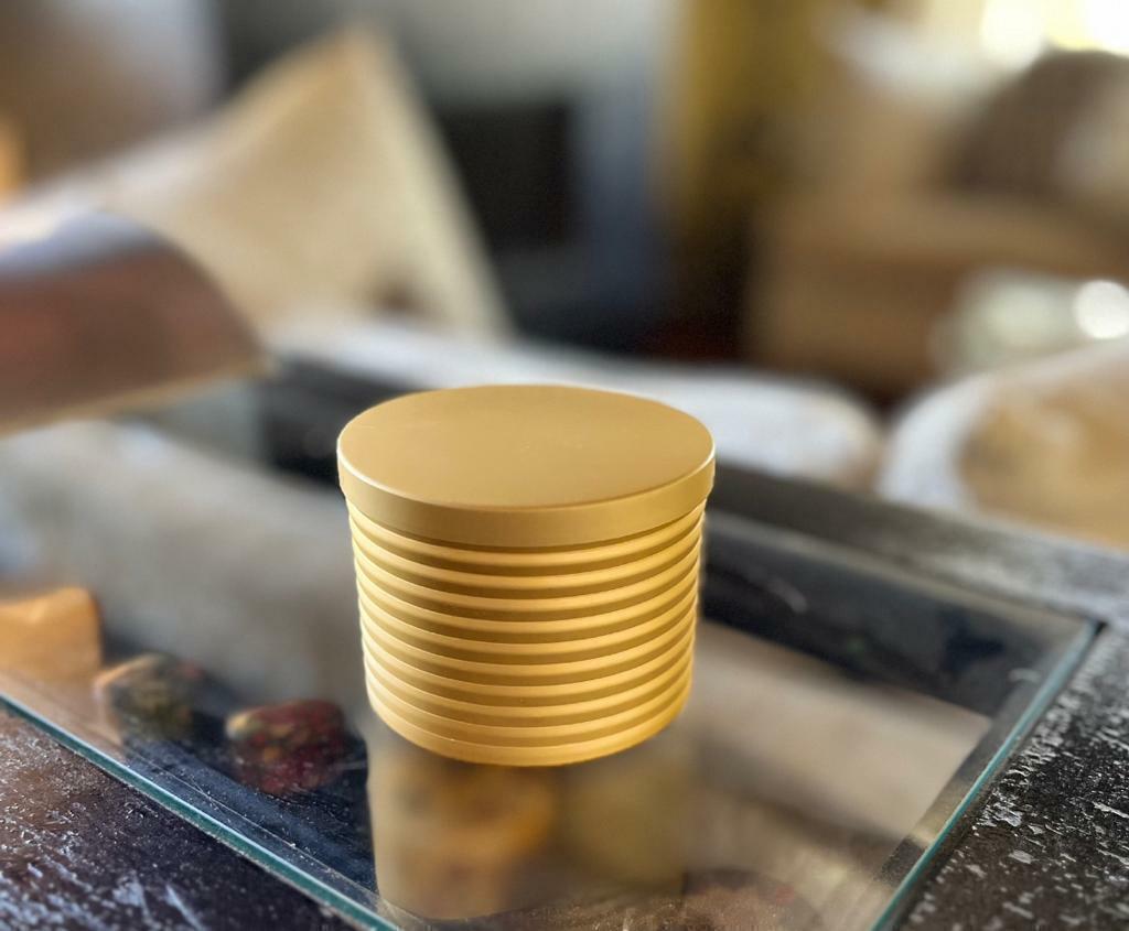 Diseño moderno y sofisticación en cada detalle. Esta vela de soja premium viene en un cuenco de aluminio anodizado acanalado con tapa, disponible en una variedad de colores elegantes. Sus medidas son 8 cm de diámetro por 6,2 cm de alto.